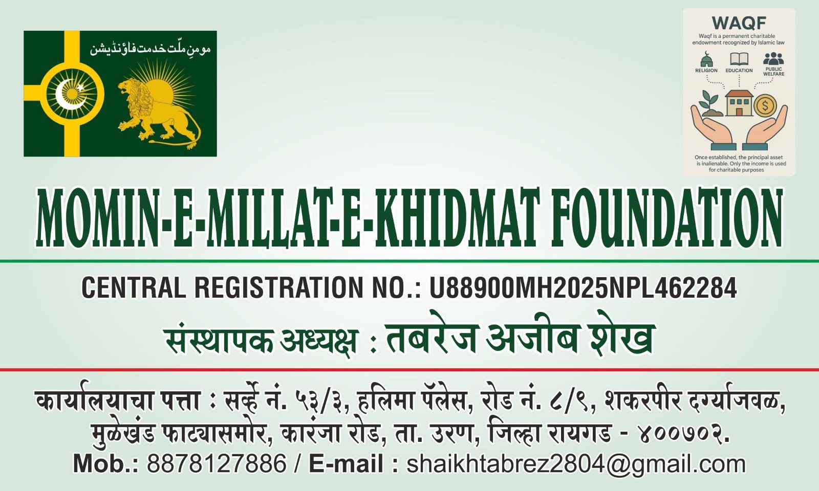 Office Address: Survey No. 53/3, Halima Palace, Road No. 8/9, Near Shakarpeer Dargah, Opposite Mulekhand Phata, Karanja Road, Tal. Uran, Dist. Raigad – 400702